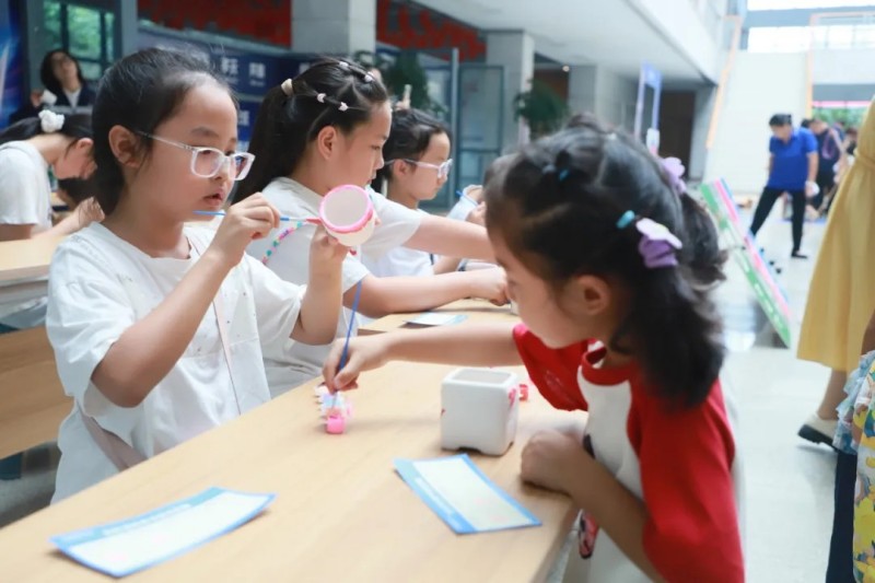 在寧鄉(xiāng)產(chǎn)業(yè)基地的“石膏娃娃”彩繪區(qū),孩子們用五彩顏料勾勒出心中的綠色能源夢;“手腳并用”挑戰(zhàn)賽鍛煉協(xié)調(diào)能力,“公雞下蛋”比拼趣味十足,加油歡呼聲響徹現(xiàn)場。